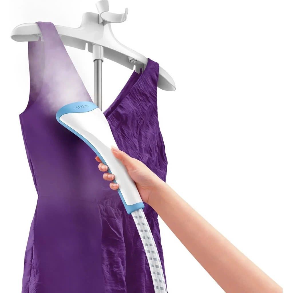 Bàn là cây hơi nước Philips GC482/29 với công suất 1600W là lựa chọn lý tưởng để ủi phẳng nhanh chóng và hiệu quả mọi loại vải, từ quần áo đến rèm cửa. Thiết kế đứng tiện lợi và luồng hơi nước mạnh mẽ giúp làm phẳng các nếp nhăn khó khăn nhất mà không cần dùng bàn ủi, tiết kiệm thời gian và công sức.