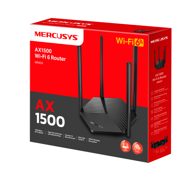 TP-Link MR60X là router WiFi 6 (802.11ax) chuẩn AX1500, được thiết kế để nâng cấp mạng gia đình lên WiFi 6 với tốc độ cao hơn, độ trễ thấp hơn và khả năng kết nối đồng thời nhiều thiết bị. Sản phẩm phù hợp cho gia đình phổ thông, căn hộ và nhà phố cần WiFi ổn định cho học tập, làm việc và giải trí.