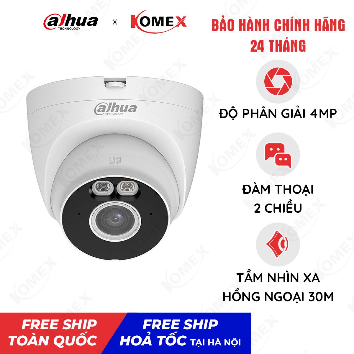 KOMEX với hơn 15 năm kinh nghiệm trong lĩnh vực Điện máy - Thiết bị điện tử, Laptop - PC - Thiết bị văn phòng và Điện gia dụng cho hơn 1 triệu khách hàng trên toàn lãnh thổ Việt Nam. KOMEX tự hào là đối tác của COOCAA, IMOU, DAHUA, EZVIZ, SKYWORTH, DSS, LYDSTO,... Với chính sách bảo hành lên đến 24 tháng, 1 đổi 1 lỗi trong vòng 30 ngày, KOMEX sẵn sàng tư vấn đúng nhu cầu, chất lượng về sản phẩm Camera IP Wifi trong nhà DAHUA có màu ban đêm DH-T4A-PV 4MP chính hãng, có giấy tờ phân phối rõ ràng từ hãng phục vụ khách hàng trên