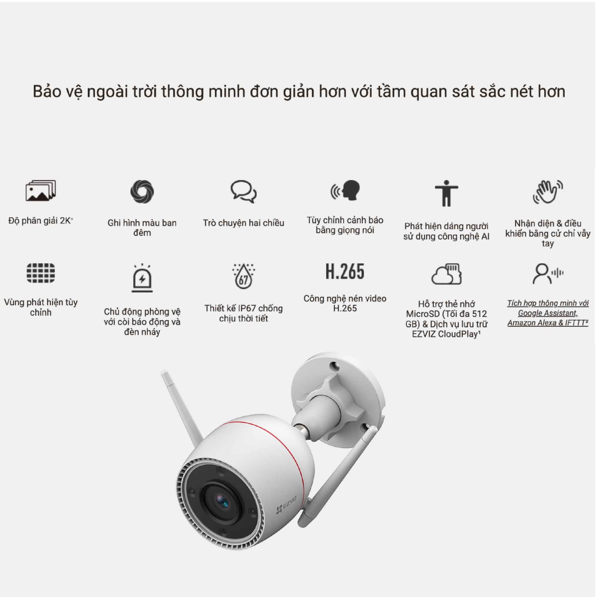Camera Wifi EZVIZ 4MP 2K ngoài trời H3C4MP là chiếc camera ngoài trời với độ phân giải lên đến 4MP 2K, cùng với tính năng đặc biệt có thể nhận biết cử chỉ vẫy tay thông minh và nhiều tính năng khác dưới đây. Chiếc camera này hứa hẹn là một trợ thủ giám sát đắc lực giúp bạn yên tâm đi công tác xa, đi du lịch hay những trường hợp tương tự.