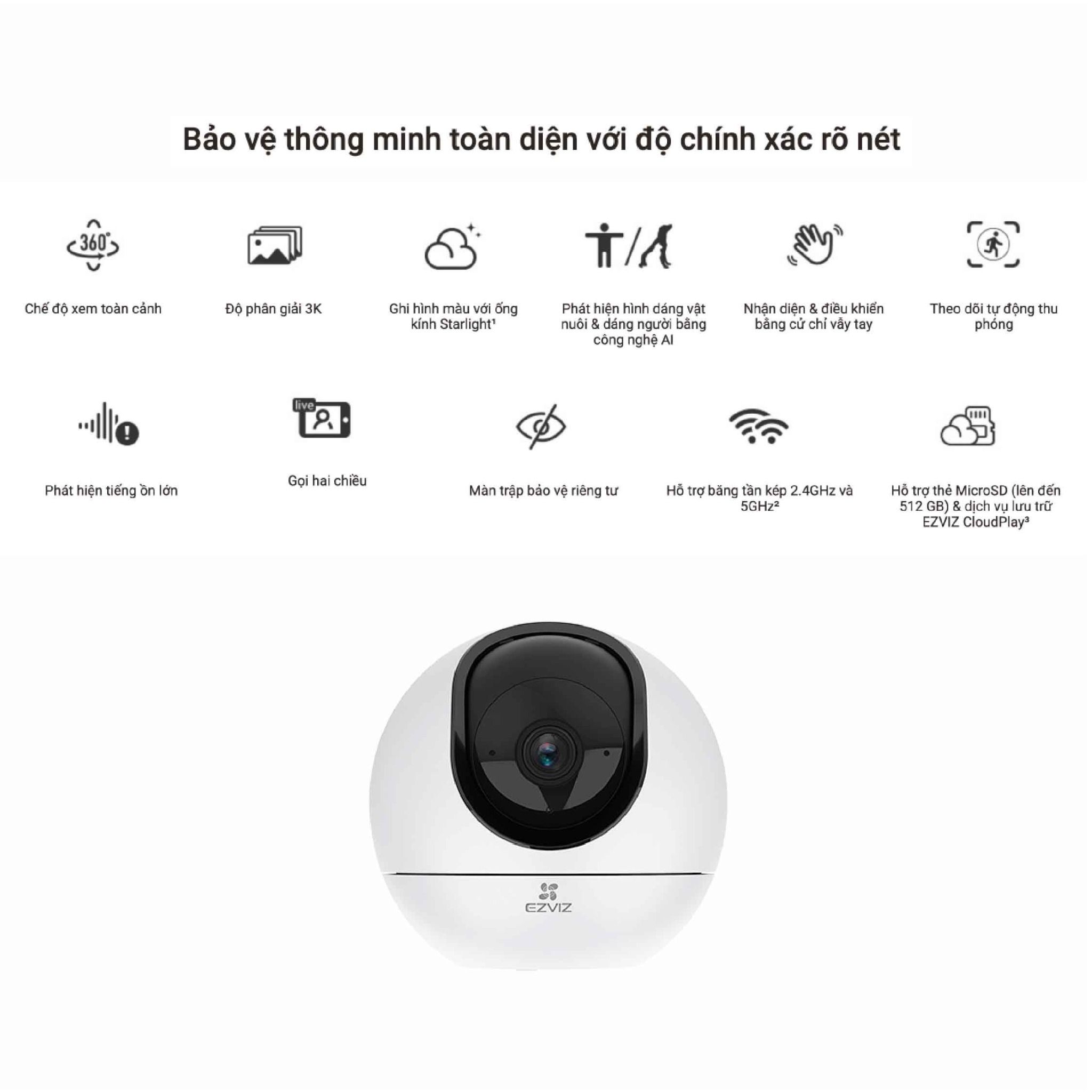 Camera Wifi EZVIZ quay quét trong nhà 5MP 3K H6 không chỉ là một công cụ an ninh mạnh mẽ, mà còn là một trợ thủ thông minh giúp bạn duy trì sự an toàn, liên lạc với thú cưng và quản lý không gian của mình một cách hiệu quả và tiện lợi. Với nhiều tính năng đặc biệt dưới đây, chiếc camera sẽ là nhân viên an ninh đắc lực bảo vệ cho ngôi nhà bạn.