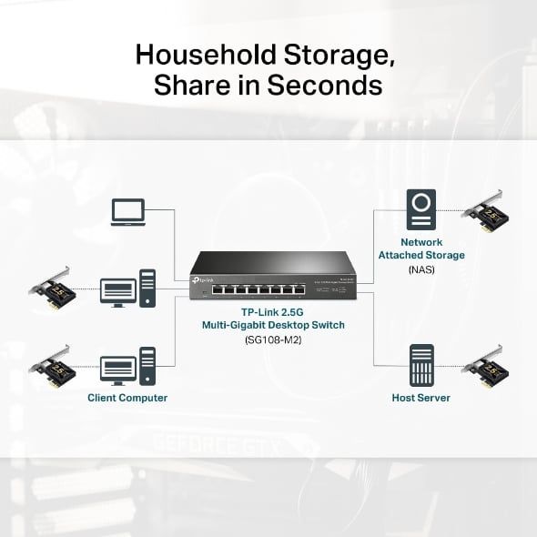 TP-Link TX201 hỗ trợ băng thông lên đến 2.5 Gbps, nhanh hơn đáng kể so với chuẩn Gigabit 1Gbps truyền thống, giúp: