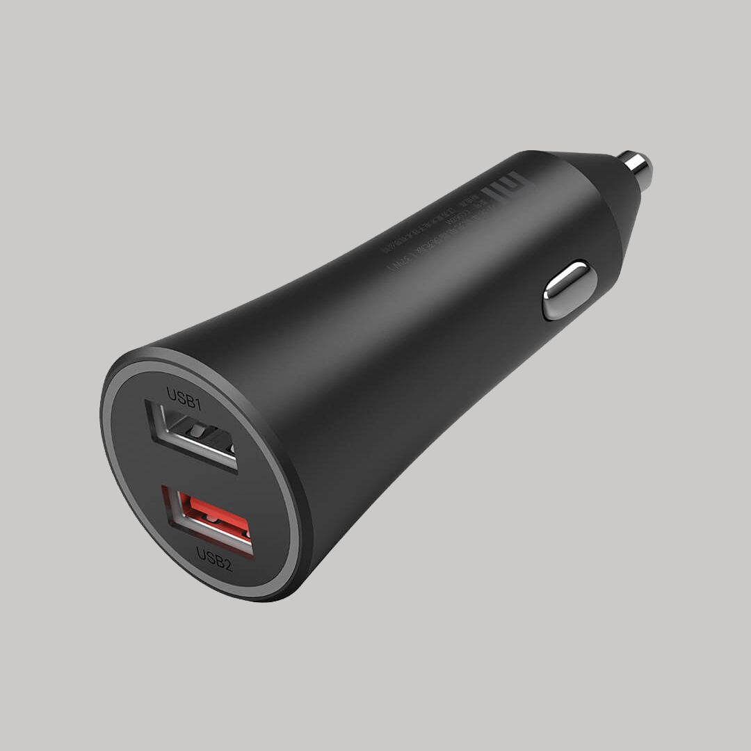 Tẩu sạc ô tô Xiaomi với 2 cổng USB cung cấp năng lượng nhanh chóng cho các thiết bị điện tử như điện thoại, máy tính bảng, máy chơi game, và máy ảnh.