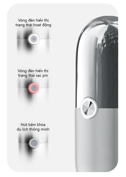 Sản phẩm còn đi kèm thêm một chiếc đế lưu trữ, giúp người dùng có thể cất máy trong các không gian như phòng tắm, phòng ngủ, phòng làm việc,... một cách gọn gàng. Nút bấm trang bị vòng LED cực kỳ bắt mắt và hiệu quả, với vòng đèn giúp hiển thị trạng thái hoạt động và trạng thái sạc pin. Bên cạnh đó, nút bấm còn được trang bị chức năng khóa du lịch, chỉ cần nhấn và giữ để bật tắt, tránh việc máy bị khởi động khi để trong hành lý.