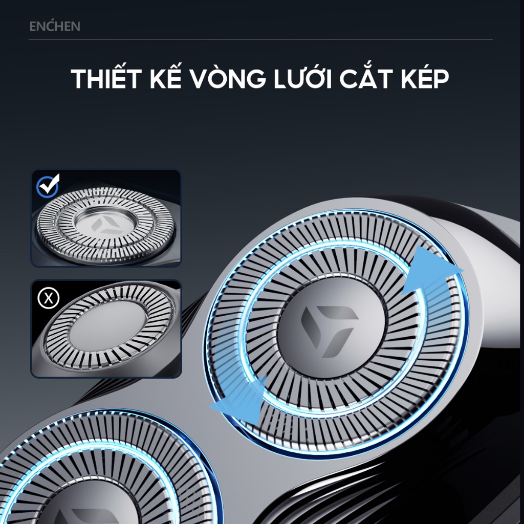 - Mini và Siêu Nhỏ Gọn: Với kích thước chỉ 57.5 x 65 x 55mm và trọng lượng 300g, máy cạo râu Enchen Mini 6