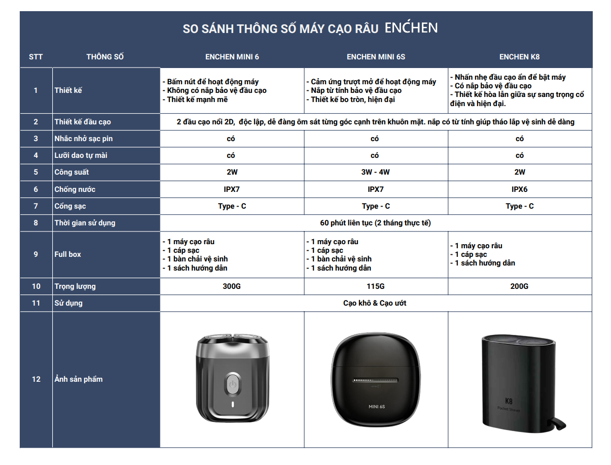 1. THÔNG TIN VỀ MÁY CẠO RÂU ENCHEN MINI 6