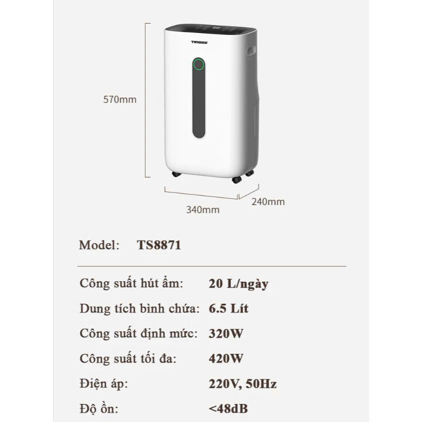 Đặc điểm nổi bật của máy hút ẩm và lọc không khí TS8871: