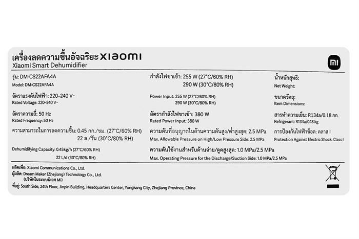 | Tính năng khác | Công suất hút ẩm 22L/ ngày |
