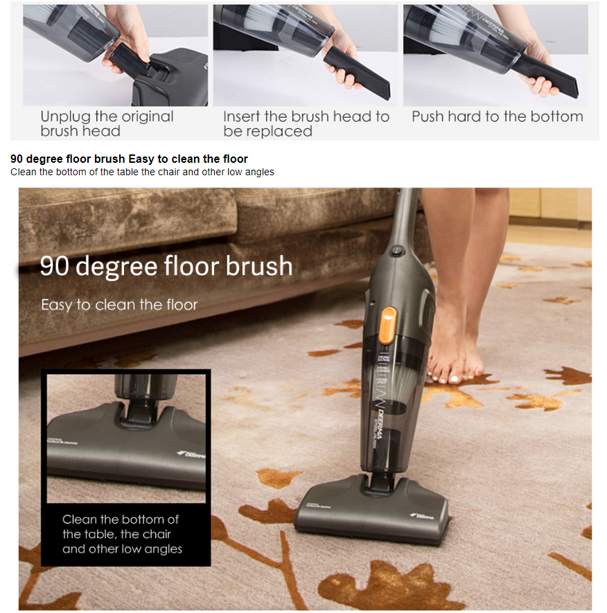 Với 3 loại đầu hút linh hoạt, máy hút bụi Deerma đáp ứng mọi nhu cầu của người dùng. Đầu hút sàn và bàn chải quay góc 90 độ được thiết kế để vệ sinh một cách hiệu quả trên các bề mặt phẳng như thảm và sàn nhà.