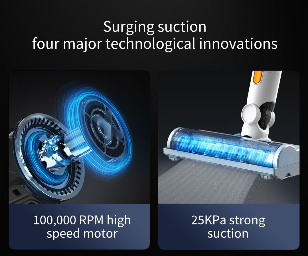 - Máy sử dụng động cơ không chổi than, hiệu suất cao, lực hút cực mạnh dễ dàng làm sạch mọi bụi bẩn, mảnh vụn, lông vật nuôi trên sàn nhà.