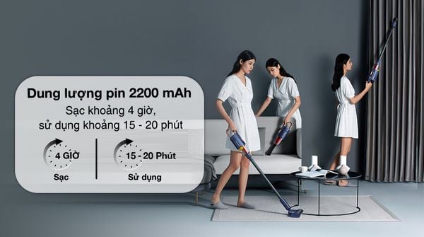 - Dung lượng pin 2200 mAh bền, tốt cho thời gian sạc khoảng 4 giờ, sử dụng khoảng 20 phút đối với mức thấp và khoảng 15 phút đối với mức cao.