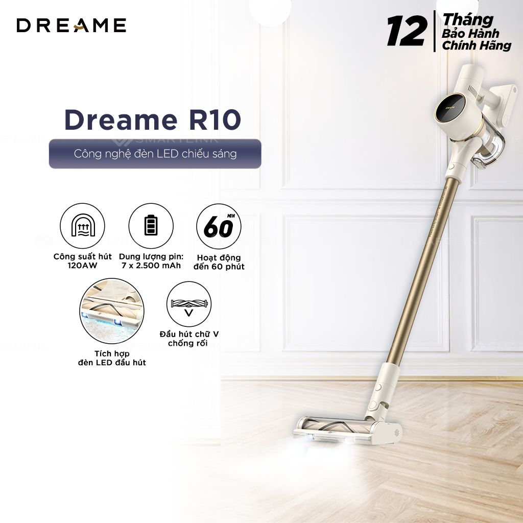 Máy hút bụi không dây Dreame R10 có thiết kế tiện lợi, công suất hút lên đến 20000 Pa, đảm bảo hiệu quả làm sạch vượt trội. Với thời gian hoạt động liên tục khoảng 60 phút và bộ lọc HEPA tiên tiến, máy giữ chặt bụi bẩn, mang lại không gian sạch sẽ.