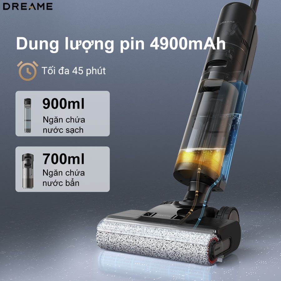 Sự kết hợp giữa thời lượng làm việc dài lâu và hộc chứa nước sạch dung tích lớn 900ml giúp giảm thiểu sự gián đoạn trong quá trình làm sạch, đồng thời hạn chế việc tích tụ vi khuẩn. Dreame H13 Pro giúp bạn dễ dàng vệ sinh không gian rộng lên đến 300m² trong một lần sạc.