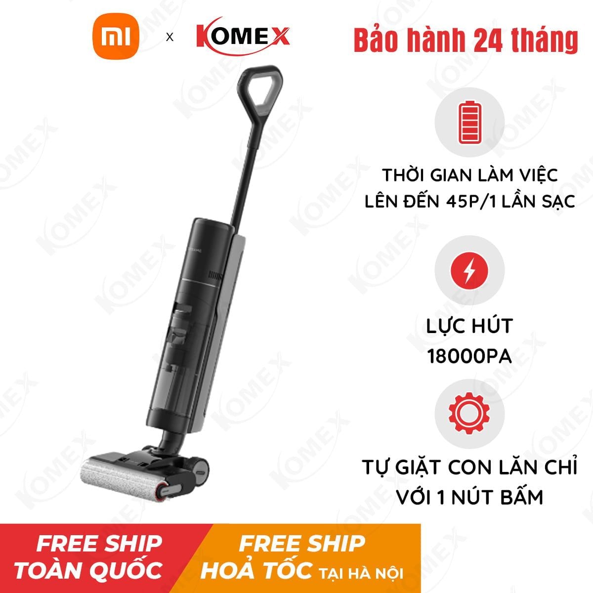KOMEX với hơn 15 năm kinh nghiệm trong lĩnh vực Điện máy - Thiết bị điện tử, Laptop - PC - Thiết bị văn phòng và Điện gia dụng cho hơn 1 triệu khách hàng trên toàn lãnh thổ Việt Nam. KOMEX tự hào là đối tác của COOCAA, IMOU, DAHUA, EZVIZ, SKYWORTH, DSS, LYDSTO,… Với chính sách bảo hành lên đến 12 tháng, 1 đổi 1 lỗi trong vòng 15 ngày, KOMEX sẵn sàng tư vấn đúng nhu cầu, chất lượng về sản phẩm máy hút bụi lau nhà thông minh Dreame H13 Pro, có giấy tờ phân phối rõ ràng từ hãng phục vụ khách hàng trên toàn quốc.