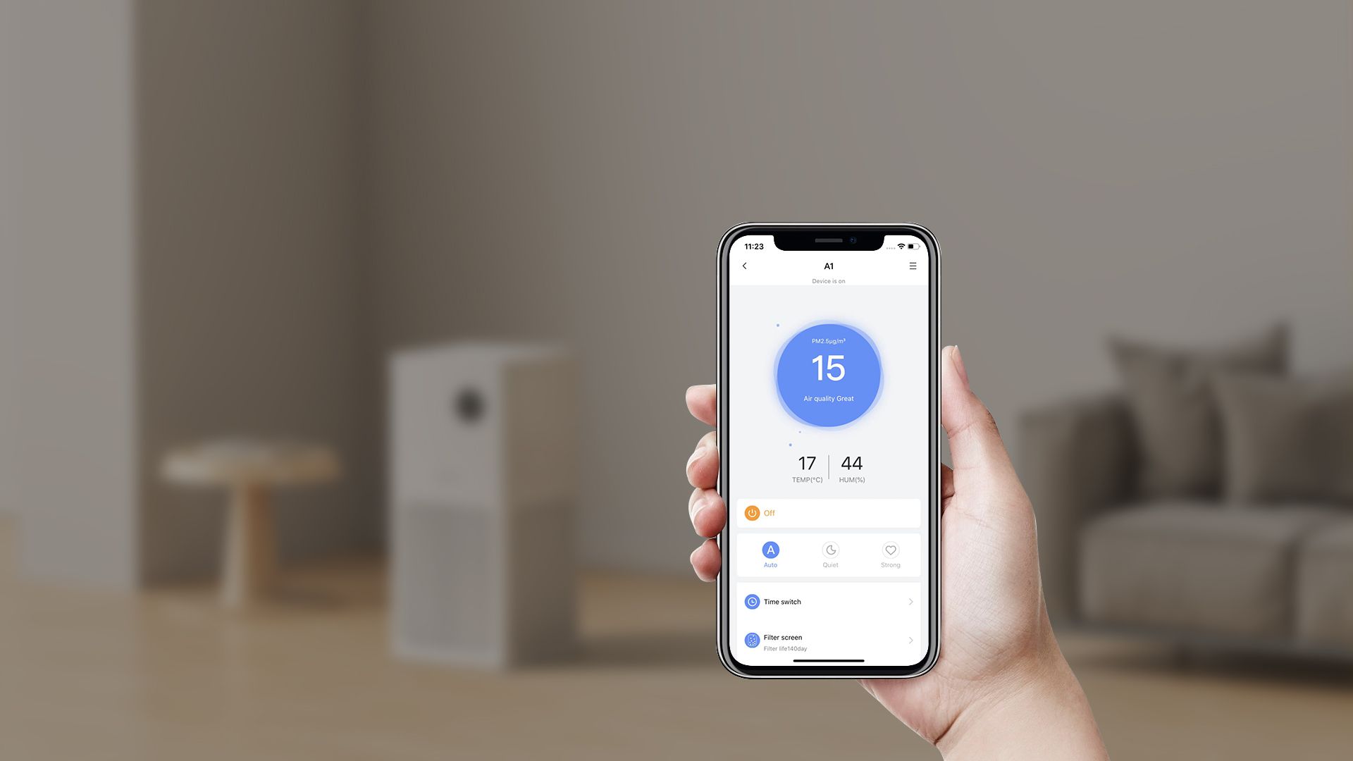 Chế độ tự động có thể tự điều chỉnh tốc độ lọc dựa trên chất lượng không khí hiện tại để lọc không khí hiệu quả và tiết kiệm năng lượng hơn.
