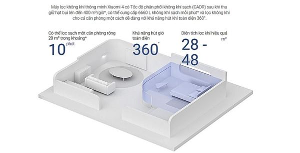 Với công suất 30W, máy lọc không khí Xiaomi Mi Air Purifier 4 BHR5096GL hoạt động hiệu quả trong phạm vi diện tích dưới 48m². Độ ồn tối đa khoảng 63 dB, tương đương với âm thanh của một cuộc trò chuyện thông thường, không gây cảm giác khó chịu khi máy hoạt động. Trong chế độ ngủ, độ ồn giảm xuống còn khoảng 32.1 dB, tương đương với tiếng thì thầm êm dịu, không ảnh hưởng đến giấc ngủ của bạn hoặc trẻ nhỏ trong gia đình.