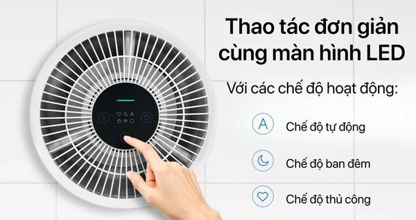 Màn hình LED ở phần trên của máy không chỉ hiển thị chất lượng không khí mà còn tích hợp hệ thống cảm ứng cho phép bạn dễ dàng thay đổi chế độ sử dụng. Chạm nhẹ vào màn hình là bạn có thể điều chỉnh chế độ sử dụng (Im lặng/Tự động/Sức khỏe) để tạo ra không gian không khí trong lành hơn.