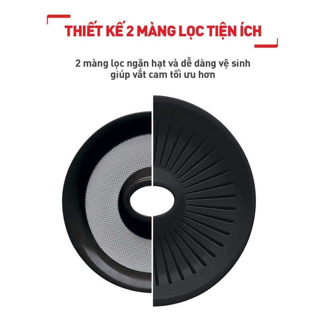 Máy vắt cam Tefal Vitapress ZP300810 sở hữu nhiều tính năng tiện ích: nắp đậy chống bụi bẩn, vi khuẩn; chức năng xoay đảo chiều vắt kiệt bã; hai lưới lọc linh hoạt đáp ứng mọi nhu cầu; quai cầm chắc chắn, thuận tiện khi rót nước ép; ca chứa có vạch chia dễ dàng đo lường.