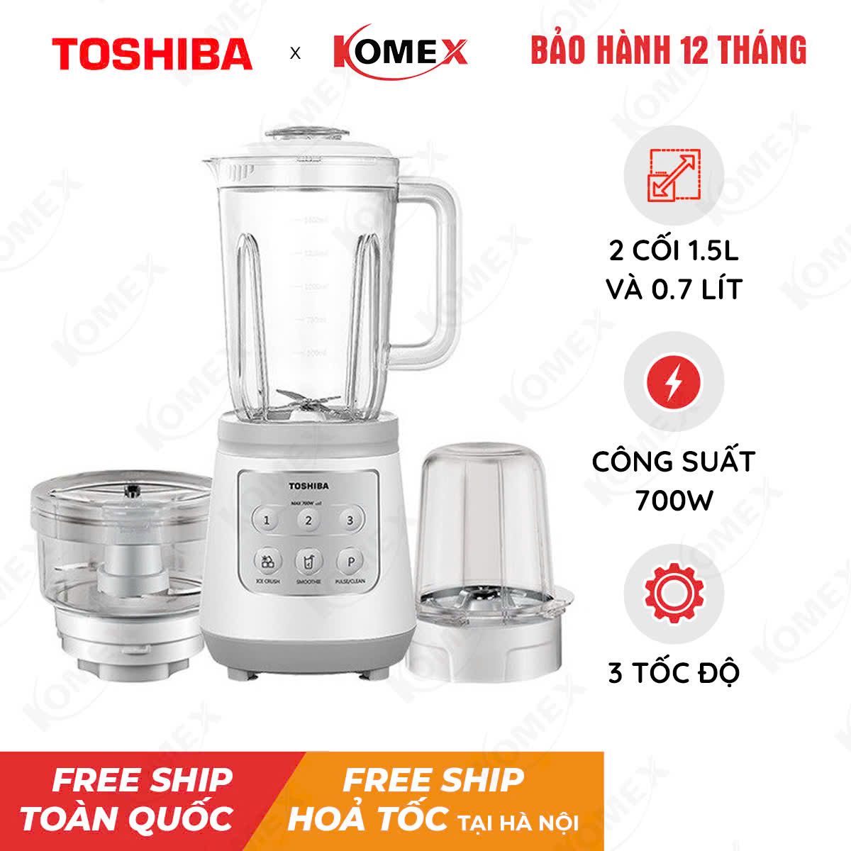 KOMEX với hơn 15 năm kinh nghiệm trong lĩnh vực Điện máy - Thiết bị điện tử, Laptop - PC - Thiết bị văn phòng và Điện gia dụng cho hơn 1 triệu khách hàng trên toàn lãnh thổ Việt Nam. KOMEX tự hào là đối tác của COOCAA, IMOU, DAHUA, EZVIZ, SKYWORTH, DSS, LYDSTO,… Với chính sách bảo hành lên đến 12 tháng, 1 đổi 1 lỗi trong vòng 30 ngày, KOMEX sẵn sàng tư vấn đúng nhu cầu, chất lượng về sản phẩm Máy xay sinh tố đa năng Toshiba BL-70PR1NV, có giấy tờ phân phối rõ ràng từ hãng phục vụ khách hàng trên toàn quốc.