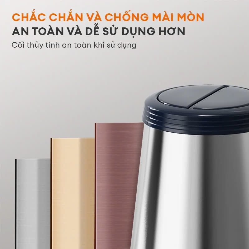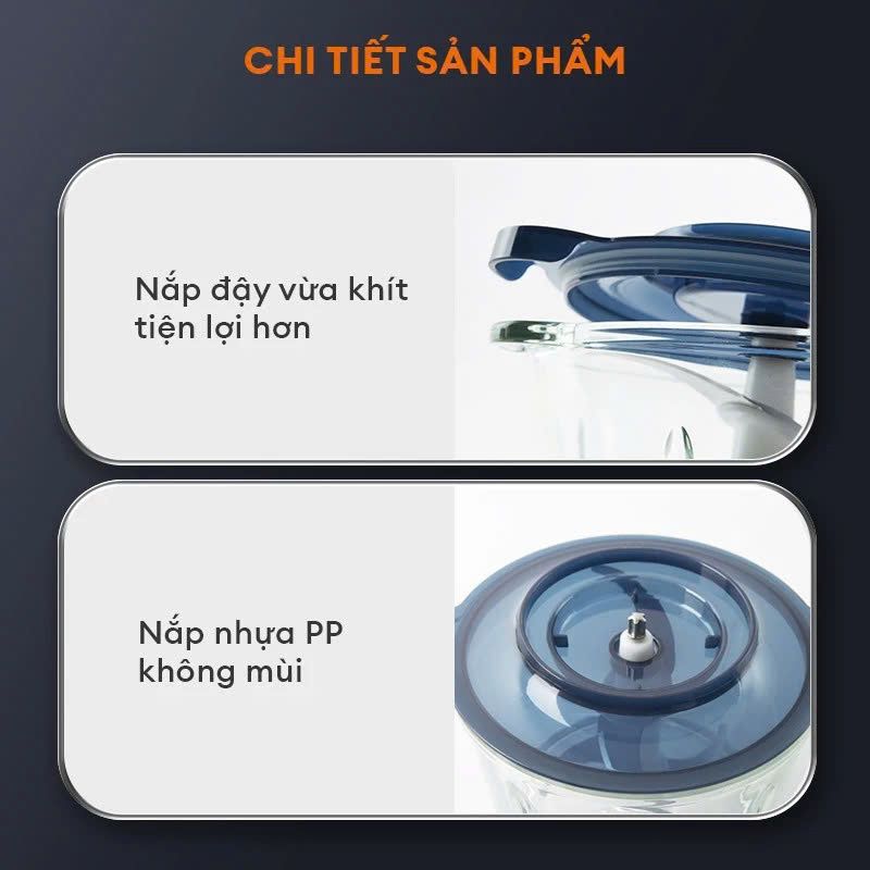 Với chất liệu thủy tinh cao cấp, máy xay giúp giữ nguyên hương vị tự nhiên và dưỡng chất trong thực phẩm. Bên cạnh đó, nắp đậy được làm từ nhựa PP cao cấp, đảm bảo không gây ảnh hưởng đến mùi vị của thực phẩm bên trong, mang lại trải nghiệm sử dụng an toàn và tiện lợi.