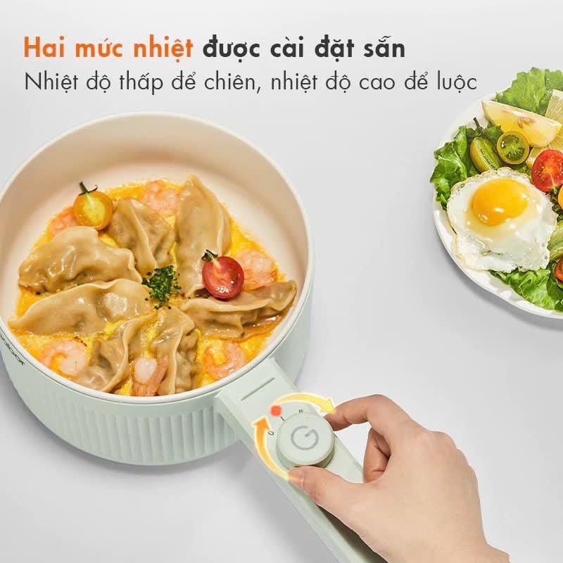 Với công suất nấu lên đến 600W, nồi giúp chế biến thực phẩm một cách nhanh chóng, giảm thiểu thời gian chờ đợi cho người dùng. Bạn có thể hấp và nấu cùng lúc, mang lại sự tiện lợi tối đa cho việc nấu nướng. Nồi hỗ trợ hai mức nhiệt, với chế độ thấp phù hợp cho các món chiên và chế độ cao dành cho luộc hoặc lẩu, cho phép bạn chế biến đa dạng món ăn.