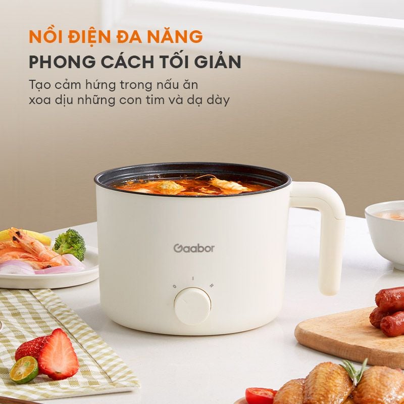 - Nồi điện đa năng Gaabor GR-N15A có dung tích 1,5L, thích hợp dùng cho 1-2 người ăn.