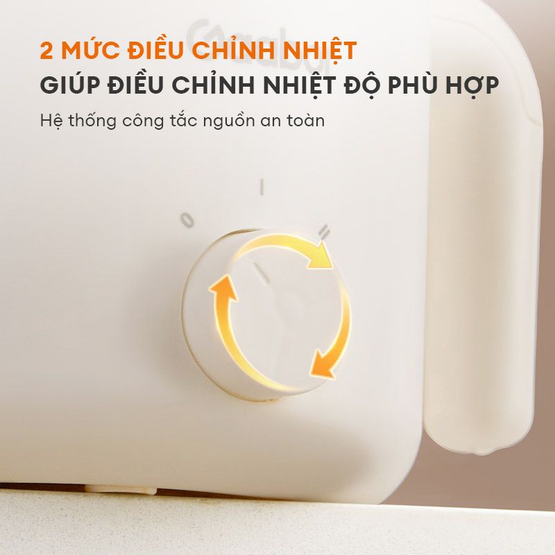 2 mức nhiệt điều chỉnh bằng núm vặn dễ dàng sử dụng. Chỉ cần cắm điện để sử dụng, vô cùng tiện lợi khi nấu nướng các món chiên, xào, luộc, hấp, nấu canh,...
