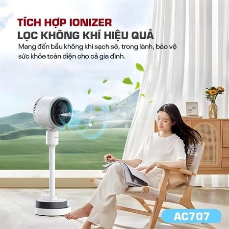 Ngoài ra, quạt còn được trang bị công nghệ lọc không khí bằng ionizer giúp không gian sống luôn mát mẻ, trong lành và dễ chịu hơn.
