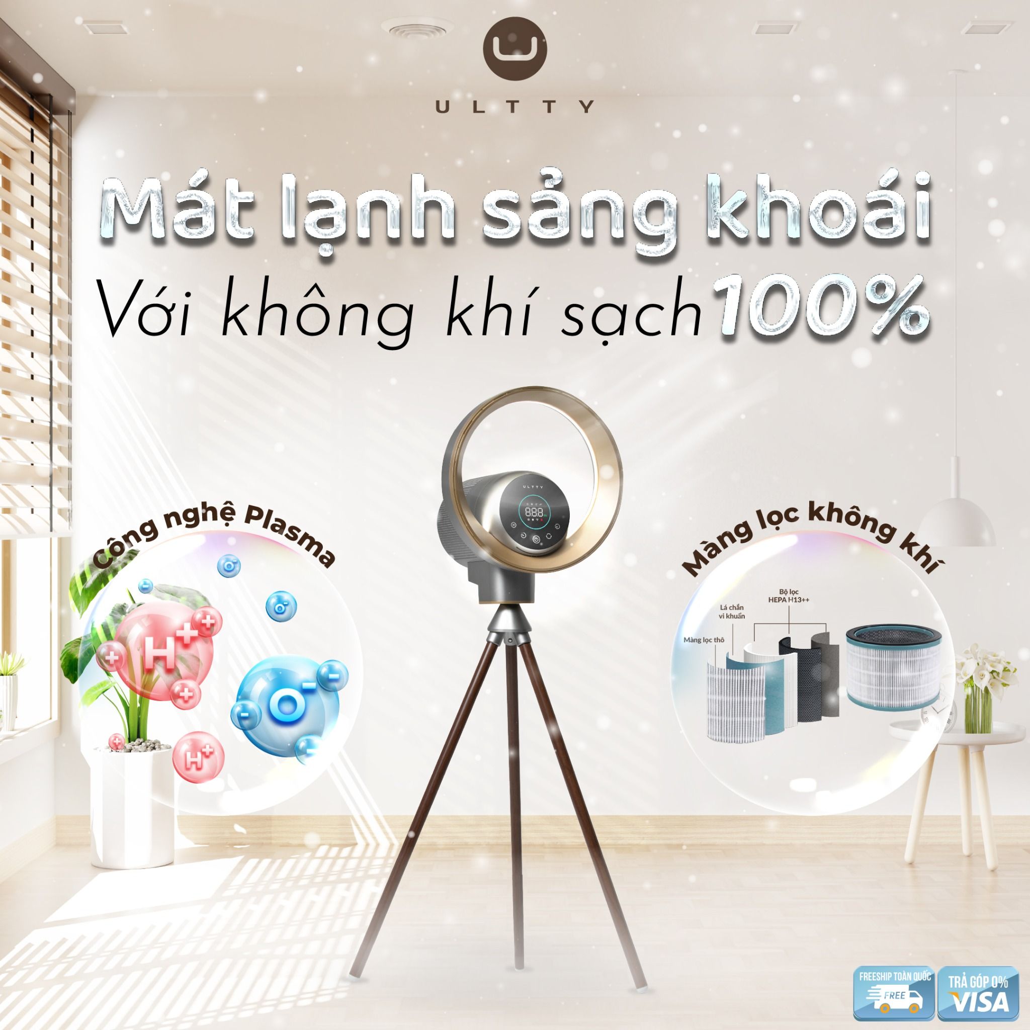 Quạt lọc không khí Ultty BB cao cấp, với công nghệ chuyển nước tiên tiến và đèn khí quyển học, mang tính thẩm mỹ cao. Với khả năng làm sạch không khí hiệu quả trong khu vực lên đến 100m2 chỉ trong 45 phút, 9 cấp độ gió làm mát và 4 chế độ linh hoạt, cung cấp sự thoải mái và tiện ích cho người dùng. Cảm biến thông minh, kết nối ứng dụng từ xa, công nghệ khử trùng Plasmacluster ion tiên tiến và hệ thống lọc 4 bước TotalCleanse đảm bảo không khí trong lành và sạch sẽ.