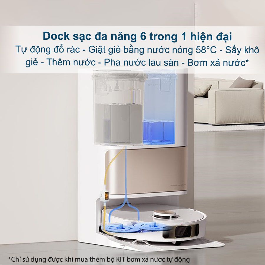 Hệ thống này không chỉ có công suất hút mạnh mẽ mà còn nổi bật với khả năng giảm thiểu tiếng ồn. Khi robot hoạt động, bạn sẽ không bị làm phiền trong lúc thư giãn, xem TV, hay ngủ.