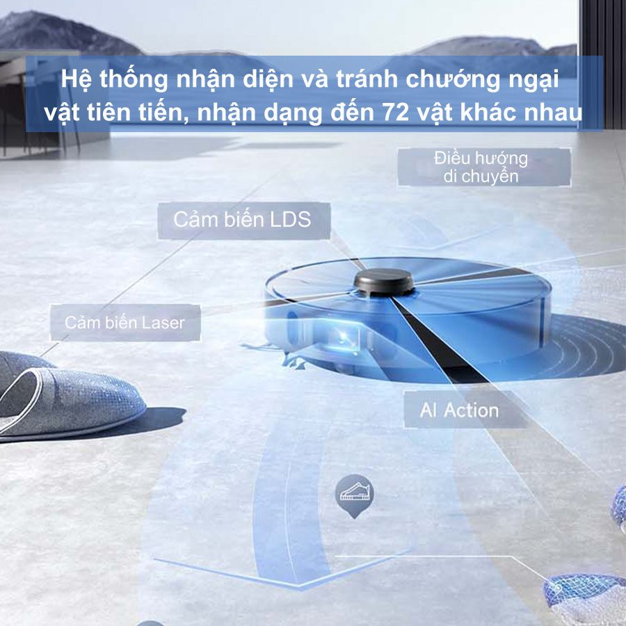 Camera AI không chỉ giúp robot tránh chướng ngại vật một cách chính xác, mà còn phân biệt được tới 70 loại chướng ngại vật khác nhau, từ đồ nội thất cho tới các vật nhỏ trên sàn. Robot không chỉ tránh những vật cản này mà còn đánh dấu vị trí của chúng trên bản đồ kỹ thuật số và chụp ảnh, giúp người dùng có cái nhìn tổng quan và quản lý môi trường làm sạch một cách hiệu quả.