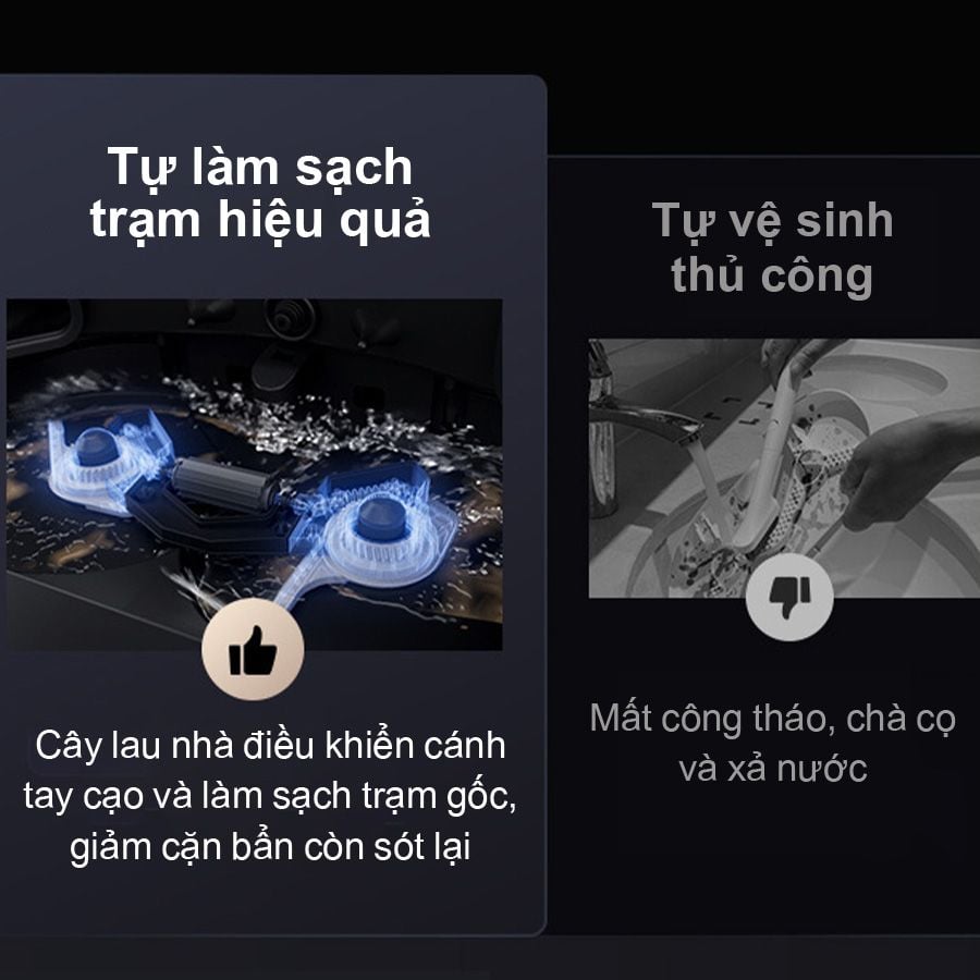 Điều này đặc biệt hiệu quả trong việc làm sạch các khu vực như giữa chân bàn ghế, khe cửa, góc tường – những nơi mà robot thông thường khó chạm tới. Hơn nữa, cánh tay robot 2.0 này còn giúp giảm thiểu rủi ro va chạm và mắc kẹt trong quá trình sử dụng, tăng độ bền cho thiết bị.