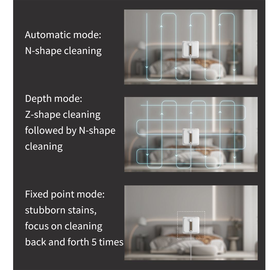 Khả năng tự động quay đầu: Robot có khả năng quay đầu một cách tự động khi đến cuối bề mặt kính, giúp tiết kiệm thời gian và năng lượng.